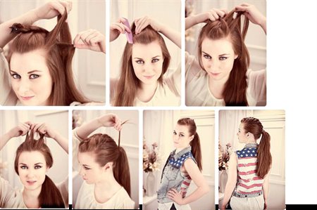 Конский хвост+жгут: комбинация жгута и скрученного конского хвоста, сложенного пополам – оригинальный способ оживить привычную укладку. Главное условие успеха – длина волос до лопаток и более.