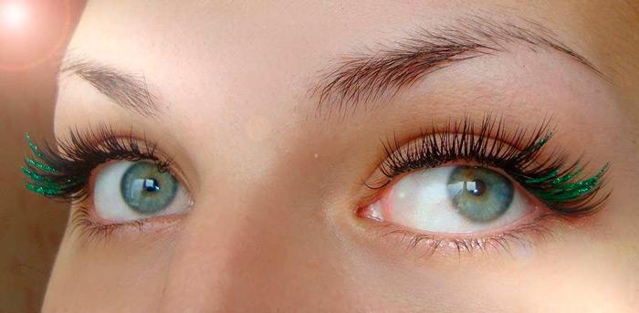 - Ресницы с зелёными уголками. Такой цвет будет заметен даже при слабом освещении. Но зелёный подходит не всем женщинам. Его надо подбирать под общий цветотип, поэтому рекомендуется консультация лэшмейкера.