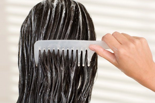 - Доведите полученную массу до однородной консистенции и нанесите сначала на корни волос, а после и на локоны по всей их длине;