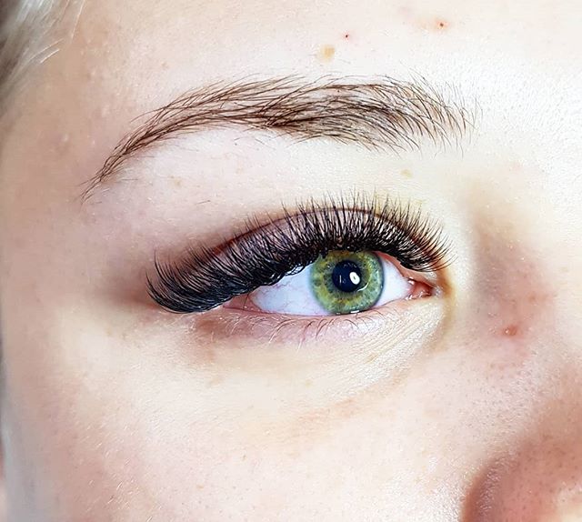 Более близкий ракурс на фото выше позволяет детально рассмотреть эффект от 2д наращивания для карих глаз.