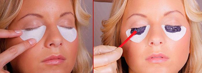 - Как пользоваться лепестками для окрашивания ресниц? Требуется отклеить бумажное основание и приложить накладку липкой стороной к коже. Располагать лепесток необходимо под нижние ресницы.