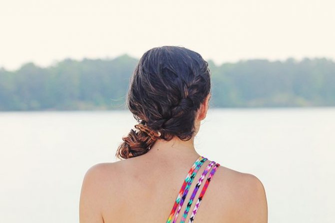 Понятное дело, что охватить всю длину волос не получится, можно собрать «лишние» локоны при помощи косы в очень милую спортивную прическу. Начиная с левого виска необходимо плести небольшой толщины косу, постепенно вплетая прядки. Не обязательно останавливаться у противоположного виска: если проплести косу и далее, а затем заколоть ее заколкой – выйдет настоящее произведение!