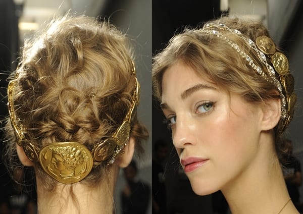 Удлиненное каре можно превратить в изысканную греческую прическу. Для этого следует забрать несколько низких пучков рядом и украсить их красивой повязкой или заколкой. Для полных женщин существует рекомендация дополнять подобные прически свободными локонами у лица, которые визуально стройнят.
